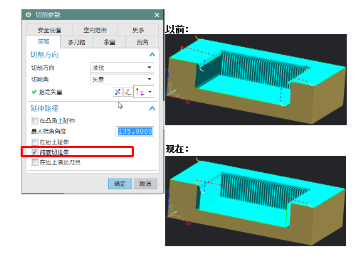 ? 改進了步距設置為應用在部件上的區(qū)域銑削刀軌質量