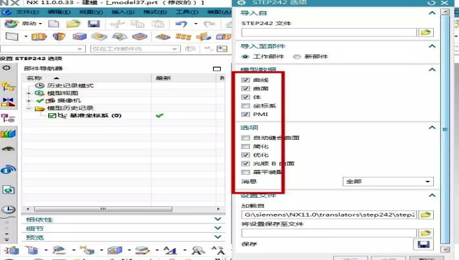 step格式:在模型數(shù)據(jù)欄,關(guān)閉不必要的導(dǎo)入選項(xiàng)(如:優(yōu)化、光順等,根據(jù)需要進(jìn)行關(guān)閉)