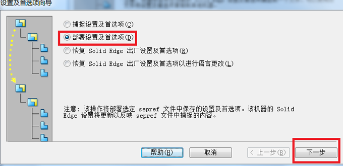 4. 加載配置。在“設置及向導”中選擇“部署設置及首選項”。