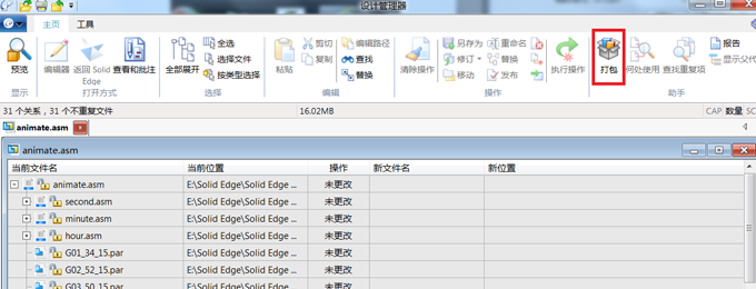 solidedge軟件為大家提供了超級(jí)方便的打包保存的功能,使用者可通過(guò)設(shè)計(jì)管理器中的“打包”命令快速將裝配體及零件和相關(guān)聯(lián)的工程圖紙進(jìn)行打包。