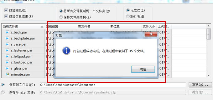 3.按需求選擇打包是否包含圖紙和仿真結(jié)果,并確定保存的路徑。
